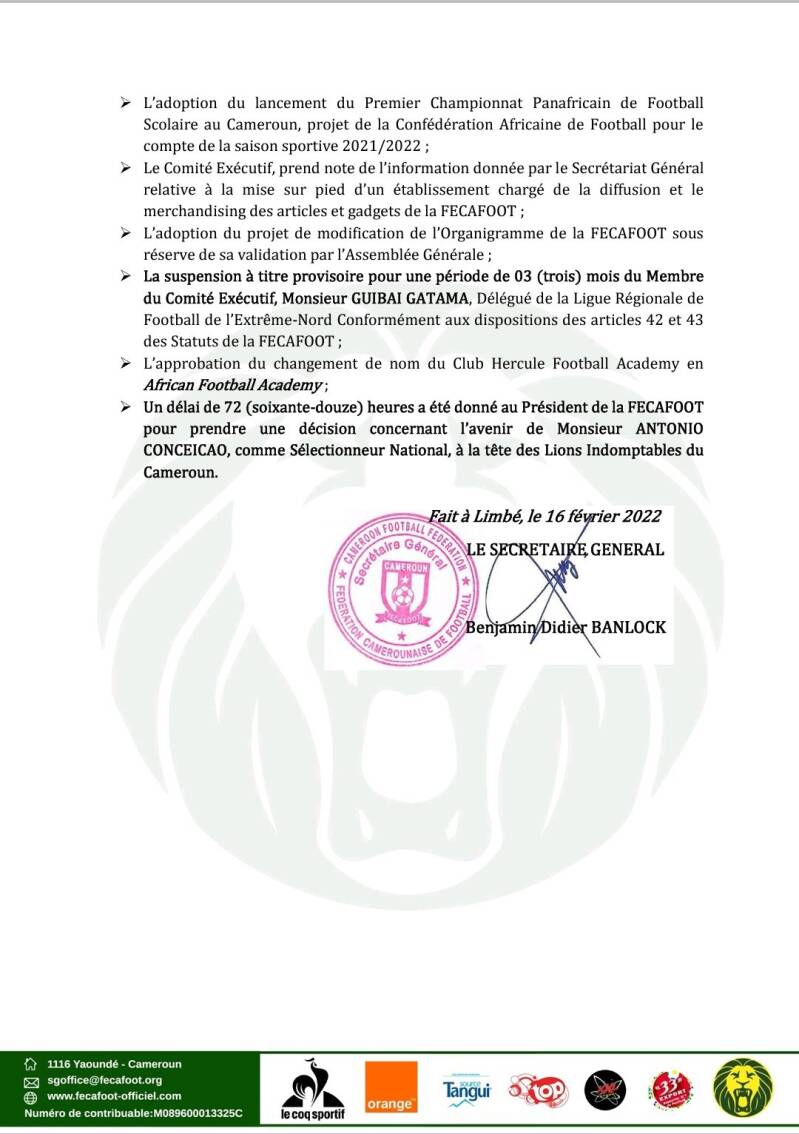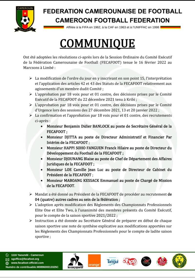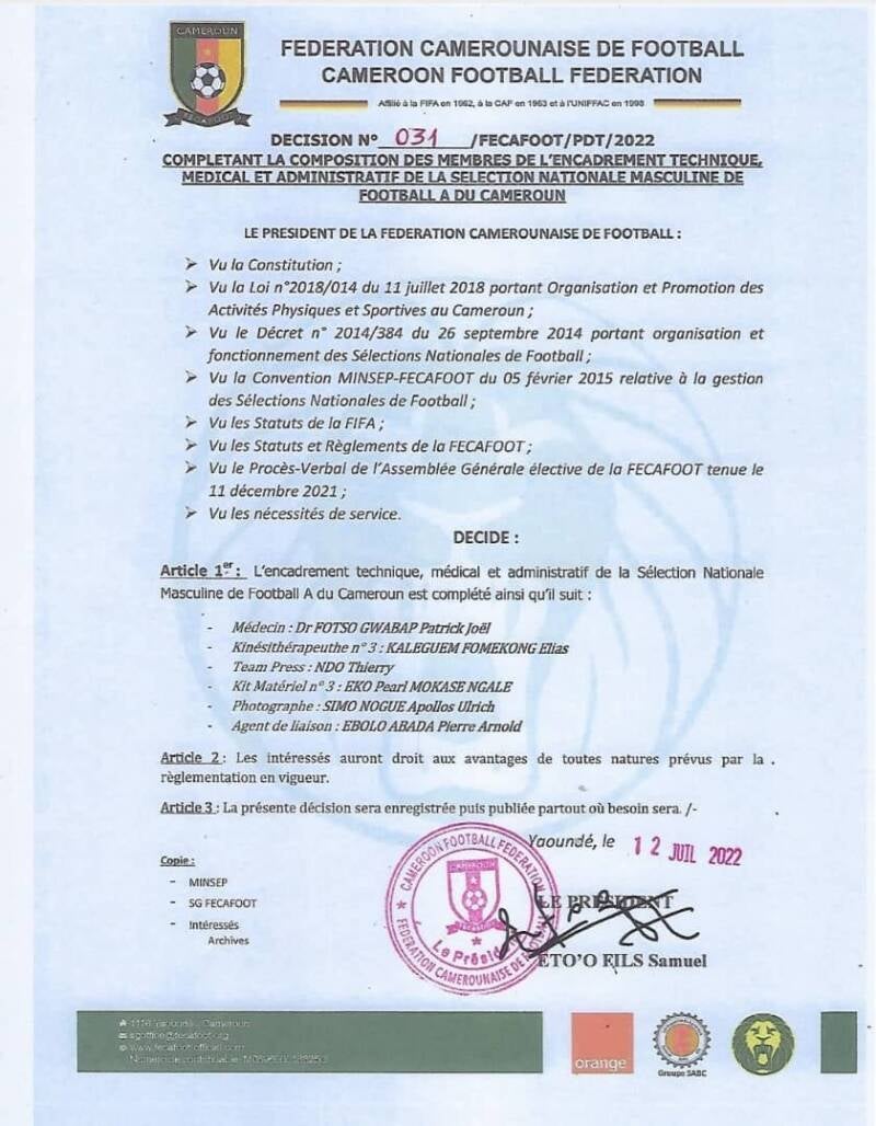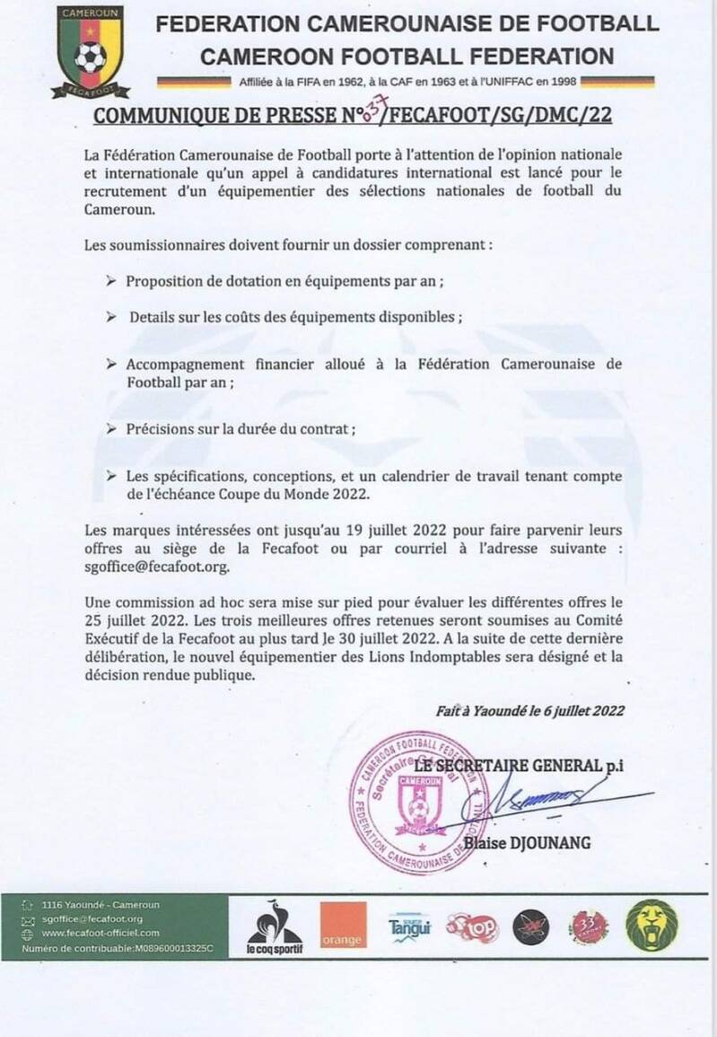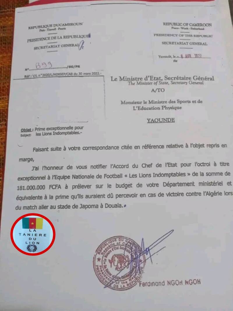 Dans ce communiqué, Manaouda Malachie (MINSANTE) précise que la presence de 25 milles supporters qui iront le 16 Novembre 2021 à Japoma assister à la rencontre Cameroun-Côte d’Ivoire est assujettie au respect dudit protocole. Voici les différentes modalités contenues dans la lettre du MINSANTE: