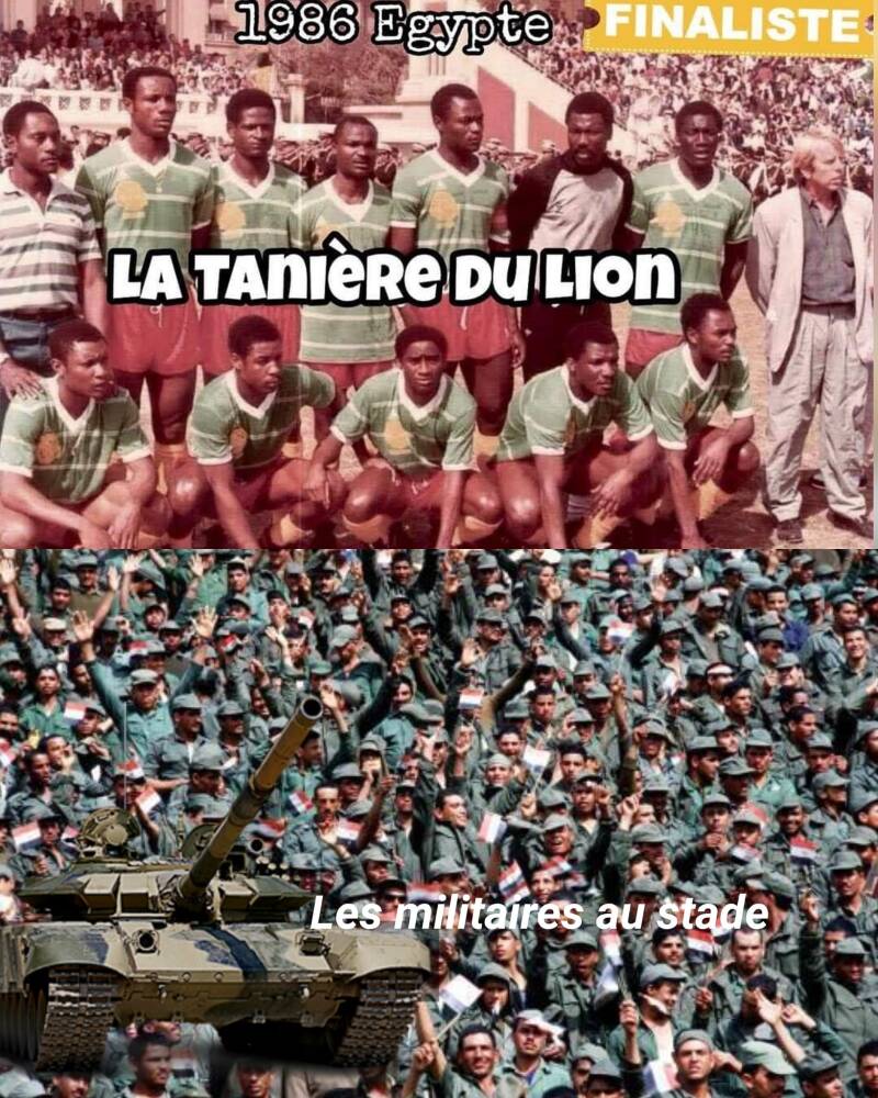 Les lions indomptables Galactiques et Historiques Cameroun devaient gagner les deux matchs capitaux contre le Maroc, pour se qualifier pour le mondial espagnol 1982 EN ESPAGNE .Pour le match aller au Maroc, le Cameroun croit pouvoir affronter le Maroc à Casablanca, Marrakech ou encore Rabat, oh que non, c’est finalement à Kénitra, ville située dans le Que des grands joueurs sur l’aire de jeu, qui ont balayés L'equipe Marocaine sans aucun problème.De g à droite: Docteur Abéga, Michel Kaham, Thomas Nkono, Jean-Pierre Tokoto, Ibrahim Aoudou, Coach Ztic Branco. Accroupis, de g à droite: Emmanuel Kundé, Nguéa Jacques, Paul Bahoken, Roger Milla, Mbom Ephrem, François Doumbé Léa (Capitaine).C'est le cameroun qui gagne toujours.BÉNÉDICTIONS.