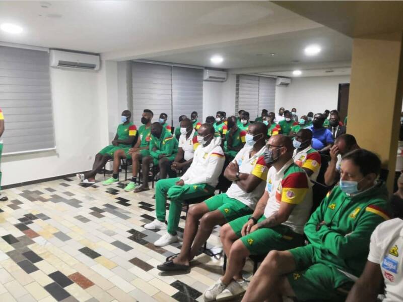 En début de soirée la Team Cameroun a reçu la visite du Ministre des Sports et de l'éducation physique et du Président de la FECAFOOT pour la réunion de veille de match. Le moral est au beau fixe dans la tanière et les Lions sont impatients d'en découdre.