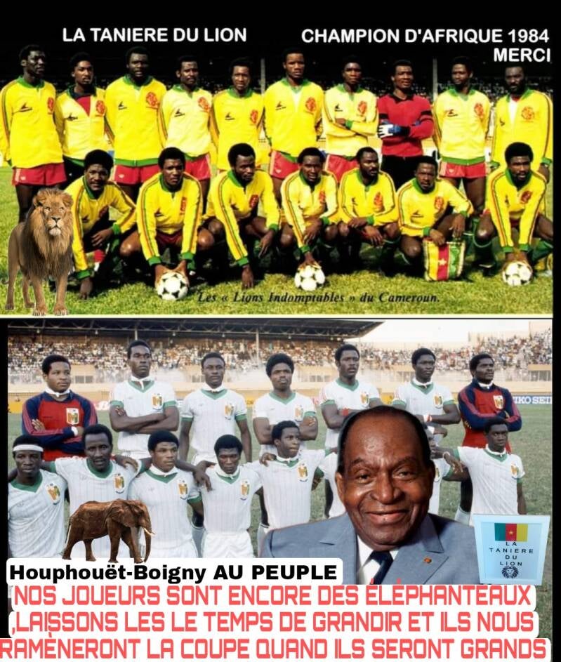 Le Président Houphouët-Boigny pour consoler son peuple par les mots suivants : « Nos joueurs sont encore des éléphanteaux, laissons les, le temps de grandir et ils nous ramèneront la coupe quand ils seront des éléphants ».