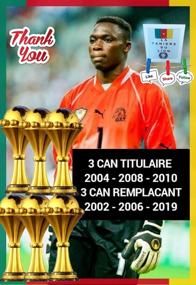 KAMENI CARLOS IDRISS A PARTICIPÉ A 6 CAN EN 2002 - 2004 - 2006 - 2008 - 2010 - 2019.IL ÉTAIT LE GARDIEN TITULAIRE EN 2004 - 2008 - 2010IL ÉTAIT GARDIEN REMPLAÇANT EN 2002 - 2006 - 2019 .