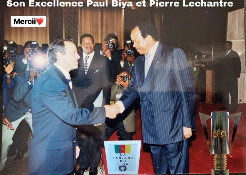 Son Excellence Paul Barthélemy Biya'a bi Mvondo, président de la république et le Coach historique et galactique du troisième trophée continental : Pierre Lechantre.